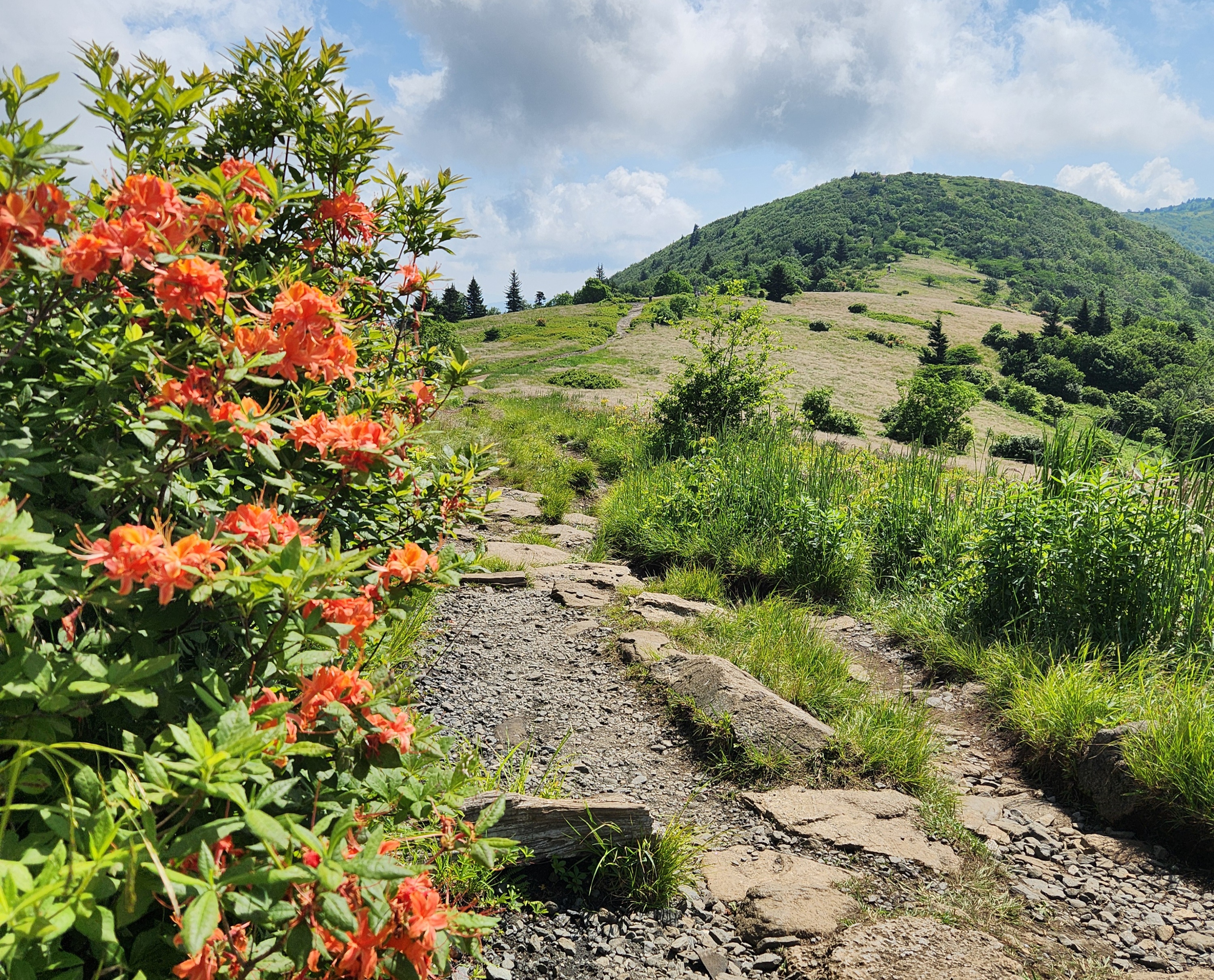 Around 10am, you'll head to Carvers Gap, where you will start your 3-day, 21 mile hike. Shuttle time is just under 2 hours. Among this route's highlights are the stunning views from the balds of the Roan Highlands. The first day you'll hike over Jane Bald and Grassy Ridge Bald on the way to your campsite. The second day, you'll hike to Hump Mountain (you'll have the option of hiking without your pack) before returning to the second campsite. Return to Carvers Gap via the AT the last day of the trip. Daily mileage is between 5 and 9 miles per day.
